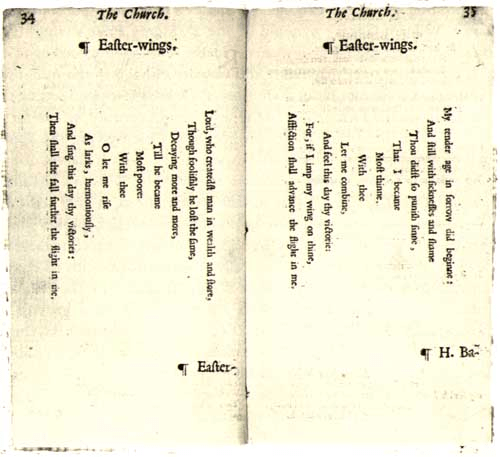 George Herbert is also famous for his picture poems, which show the power of poetry to liberate words from conventional structures, rearranging them in unexpected ways. In ‘The Altar’, the length of each line is modified such that the entire poem becomes a pictorial representation of a classical altar. In ‘Easter Wings’, the words are arranged and rotated so that two sets of wings appear to emerge from the page. In these poems, Herbert still follows the regulations of rhyme and metre, which offers both sensory and intellectual delight for the reader. Lewis Carroll, the mathematician and writer, also springs to mind, who displayed much literary brilliance in his rhymes and acrostic poems, particularly his double acrostic poem to a child-friend, Gertrude Chataway.