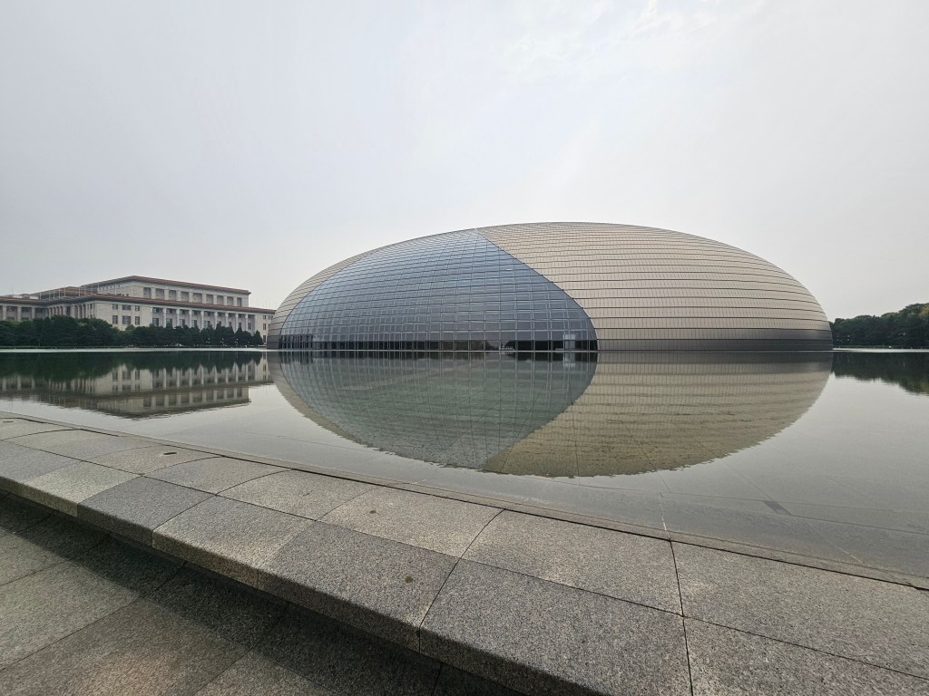 The loop around the National Centre for the Performing Arts is easy and rewarding with great views of the modern architectural marvel known affectionately as ‘The Egg.’ The semi-oval structure mirrors itself perfectly in its surrounding moat, creating the shape of an egg. The park and walkway around the building is truly an oasis of peace, considering how busy and crowded everything else is on Tiananmen Avenue.