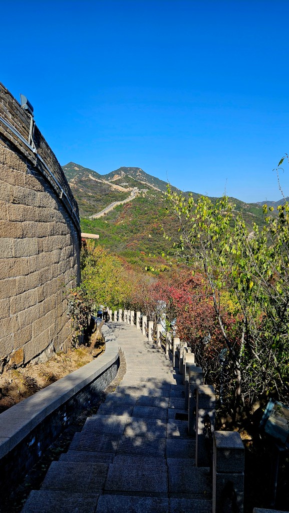 There are actually modern steps that have been built right along the Great Wall itself, and these steps are hardly used by the hordes of tourists. It is shaded by numerous trees, less steep and offers a pleasant walk with great views.